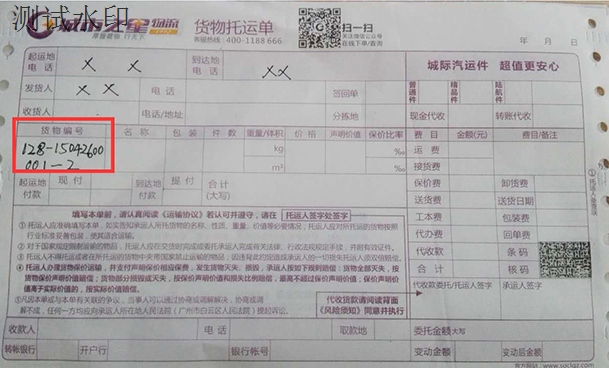 最后,在貨物托運(yùn)單上找到“貨物編號(hào)”,輸入到步驟2中箭頭所指的地方即可。