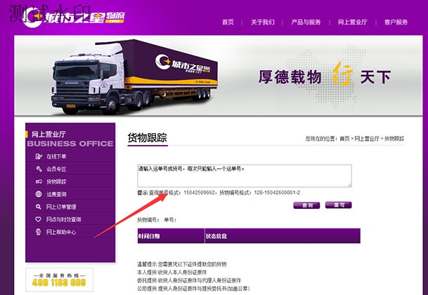 步驟2:進(jìn)入官網(wǎng)后點(diǎn)擊右上方的“網(wǎng)上營業(yè)廳”下面的“貨物跟蹤”進(jìn)入查詢頁面,如下圖: